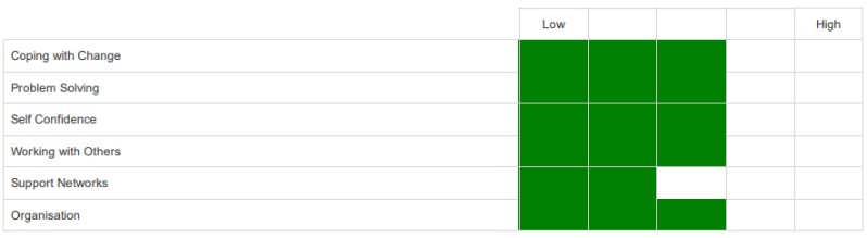 My resilience profile shows that I can typically get over issues. But I need help with my stress, self-esteem, and asking for aid. You handle change well, but stress can get in the way of your work. You have to identify stress early and ask for help if you want it. You might also perceive change as an opportunity and prepare for it in a practical way. You can fix things sometimes. You might not be able to move forward due of troubles or fear of the unknown, but you'll be able to deal with them after you become used to them. To build self-trust, you need to practise, seek for patterns, and break problems down. Self-confidence is in the centre. This suggests that you are sure of yourself in certain situations but not all of them. Trying new activities, changing how you talk to yourself when you're down, and getting excellent feedback can all help you feel more sure of yourself. Usually, working together is great, but sometimes it can be hard. Listening carefully, showing empathy, setting clear limits, and being strict can help you deal with social stress and make friends. You can feel alone and terrified because you don't use your support networks. To stay strong, you need to know what support is available, ask for it, and spend time with healthy people. Things are fine, but they could be better. Use realistic tools, create a weekly work record, and set clear goals to make the most of your time. Being organised shouldn't stop you from getting things done. These medium scores show that you have an excellent starting point for dealing with situations and getting better. You can handle stress and do well in stressful situations, though, if you establish your support network on purpose, focus on your problem-solving abilities, boost your confidence with tiny wins, and see change as a chance to get better.